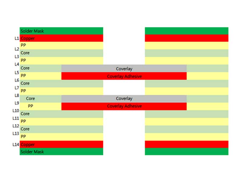 层数:14L(软硬结合板) Layer : 14L( Rigid-Flex Board) |